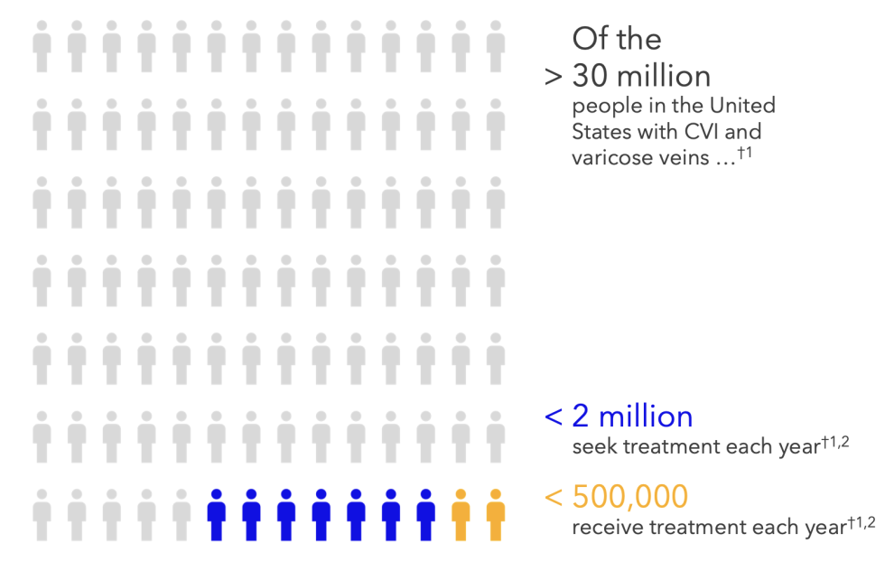 Most patients with CVI remain undiagnosed and untreated. It is estimated that people live with CVI for up to 35 years before seeking treatment.